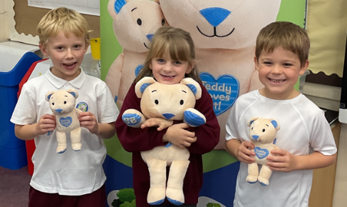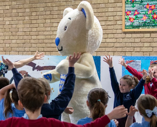 Primary school workshop with Big Bear and Little Bear leaning about how we can be more sustainable as children.